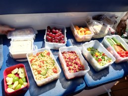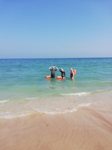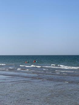 Wir hatten interessante, lustige und abenteuerliche Tage bei schönsten Bedingungen. Die Teilnehmer konnten mit viel Spaß ihre Technik verbessern und haben Erfahrungen im Meer bei unterschiedlichen Bedingnungen gesammelt. Krönender Abschluß war ein Schwimm- und Schnorchel-Trip zu den Daymaniyat Inseln – der absolute Wahnsinn! Schwimmen mit Kino: Jede Menge bunter Fische und Korallen, Schildkröten und Rochen und mitten in einem Schwarm Sardinen 😀